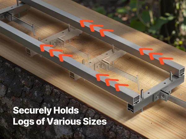 Adjustable Guide Rail: The chainsaw mill guide rail features movable crossbars that adjust easily to fit different log sizes, allowing quick, secure clamping for precise, steady horizontal cuts.