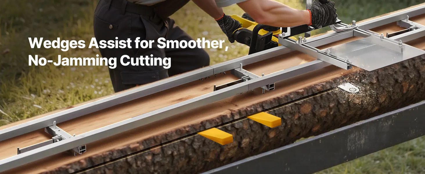 Includes 2 Log Wedges: The chainsaw mill rail guide comes with two anti-binding wedges to avoid the saw blade from jamming, ensuring a smooth and uninterrupted cutting process.