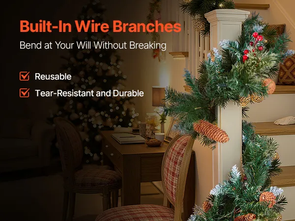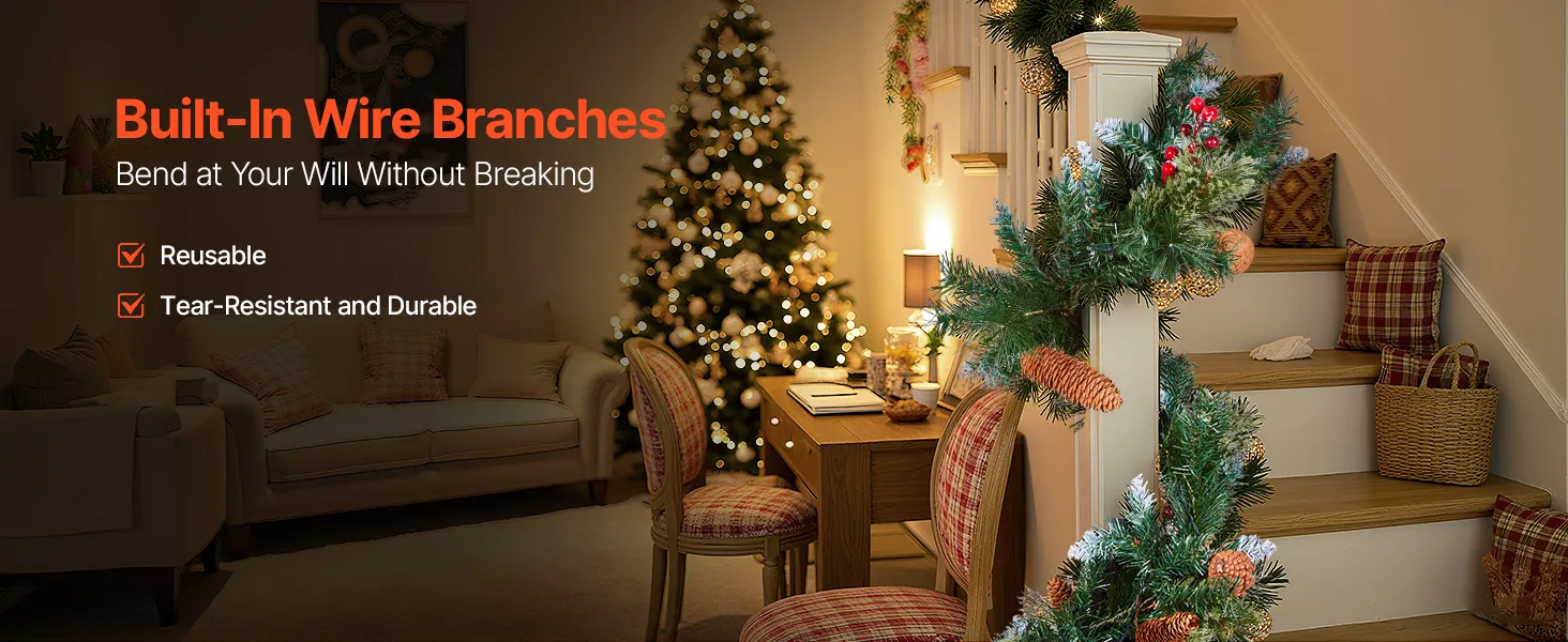 Our real-touch garland features branches reinforced with sturdy metal wire for added flexibility and tensile strength. It won’t break easily when twisted or shaped, making it convenient and reusable year after year.