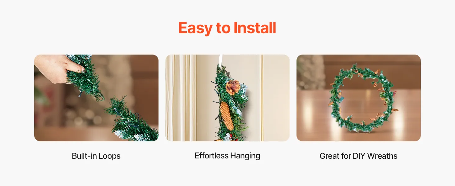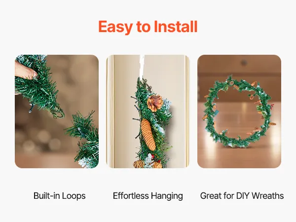 Built-in hanging loops make this Christmas greenery garland easy to install—no tools needed. The sturdy design allows quick decorating on trees, railings, windows, or mantels, saving you time during the busy season.