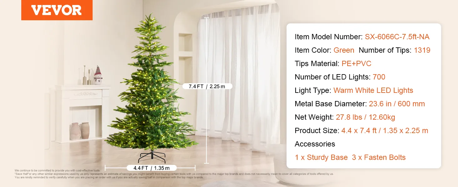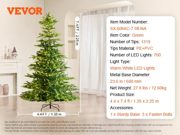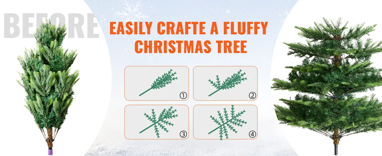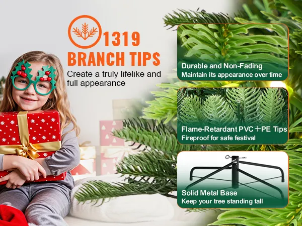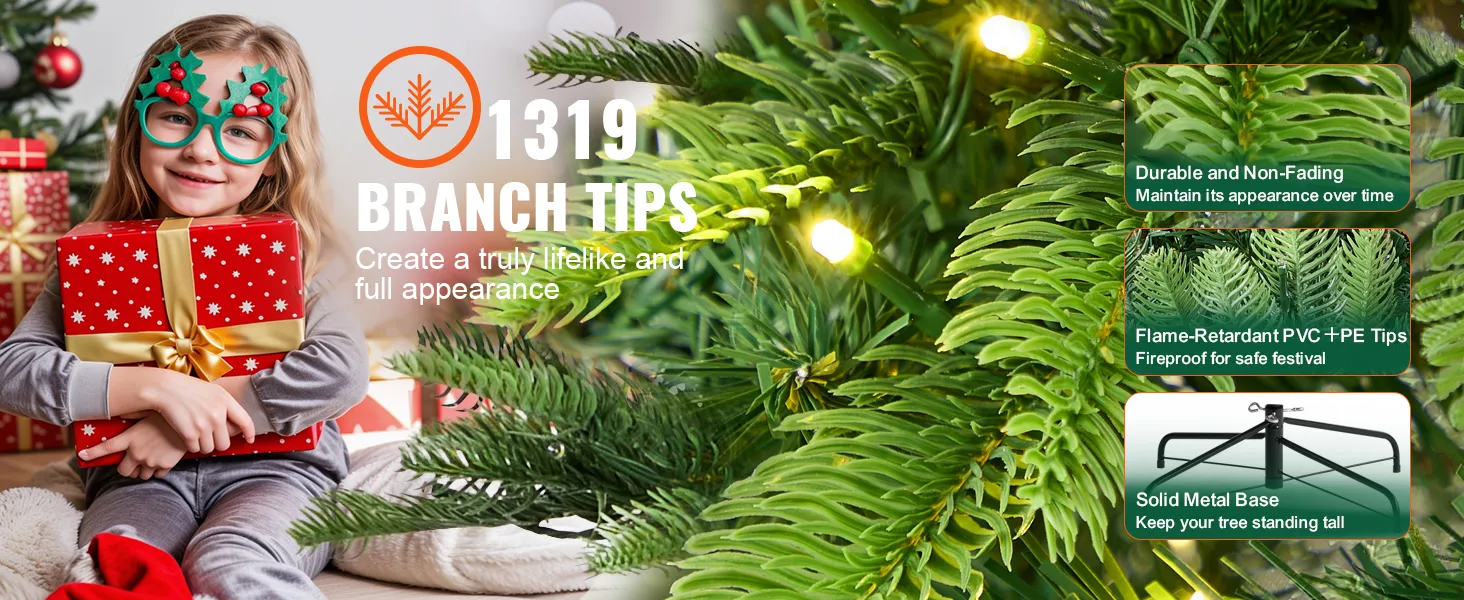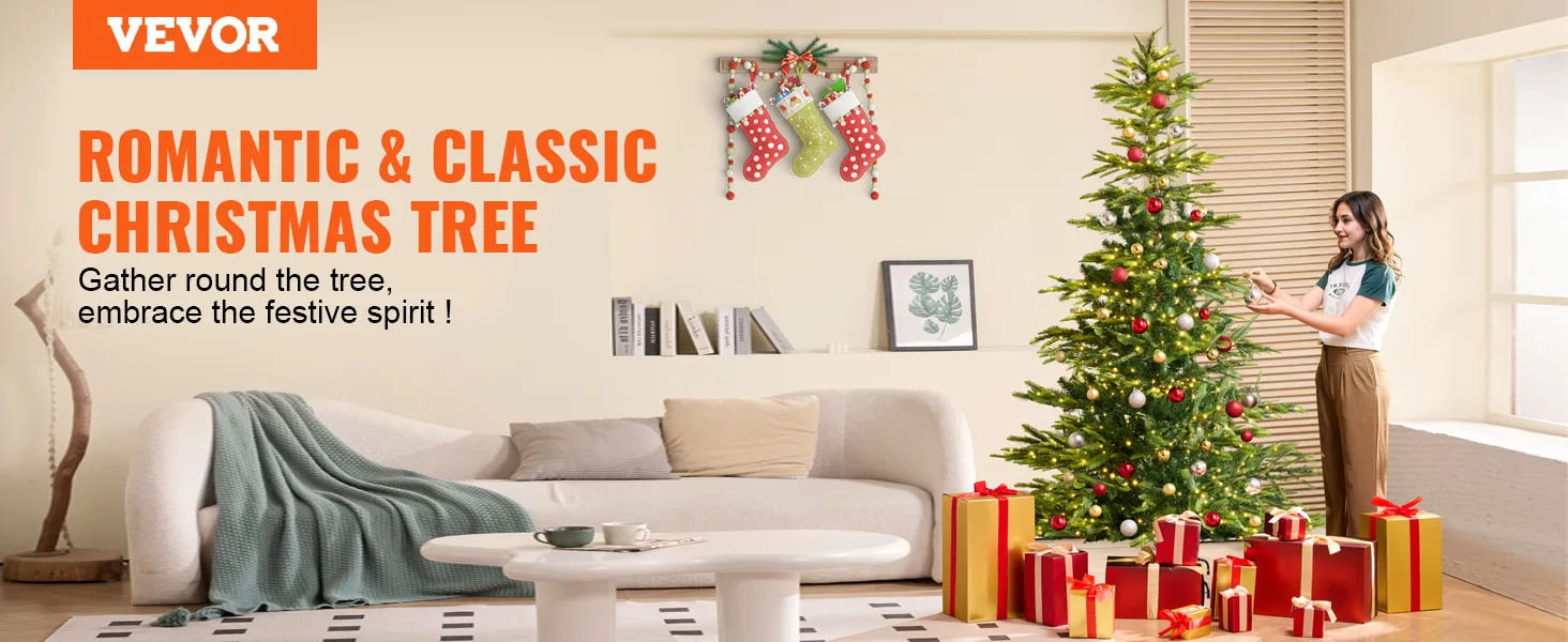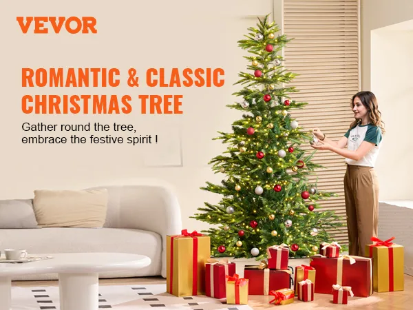 Låt VEVORs förbelysta julgranar bli mittpunkten i dina julfiranden och fylla hemmet med värme, glädje och säsongens anda. 1319 grenar ger ett frodigt och naturtroget utseende, och 700 varmvita LED-lampor skapar en förtrollande atmosfär för dig och dina nära och kära.