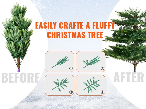 Vår julgran är utformad för problemfri montering, vilket gör dina julförberedelser till en barnlek. Med bara 3 enkla steg kan du sätta upp granen, fluffa upp och forma grenarna, vilket ger din gran ett frodigt och naturligt utseende.