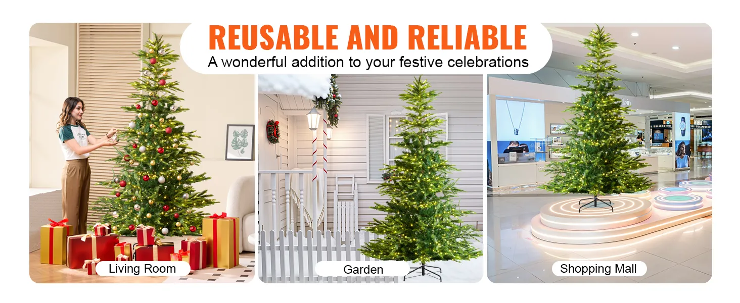 Skapa minnesvärda ögonblick: Dela julens glädje med dina nära och kära. Välj en VEVOR-julgran och skapa bestående minnen tillsammans. Oavsett om den pryder ditt hus eller din trädgård, låt den lysa hela natten och ge en magisk touch till dina festliga firanden.