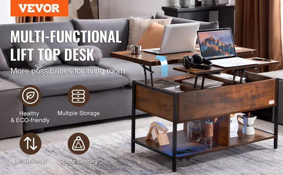 Pneumatic Lifting Mechanism: The lift top coffee table built with a high-quality metal structure, the lifting mechanism allows the tabletop to smoothly adjust without noise. The coffee table made with high-quality particleboard remains stable and sturdy after correct assembly, with strong load-bearing capacity.