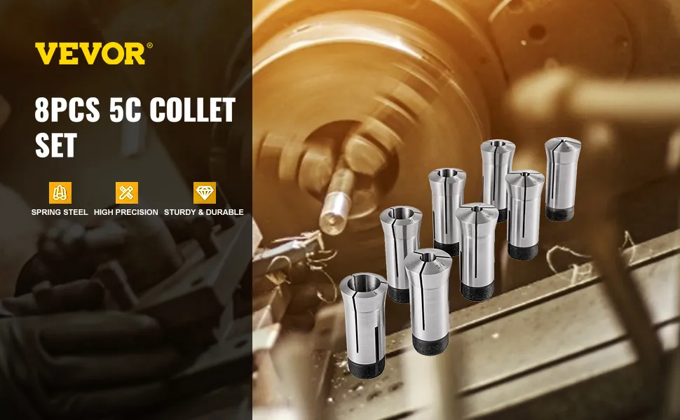 The 5C collets are made of rugged spring steel that is resistant to wear and corrosion. 8 pieces of them enlarge the range of working objects. These accurate kits clamp tightly and ensure expected processing results.