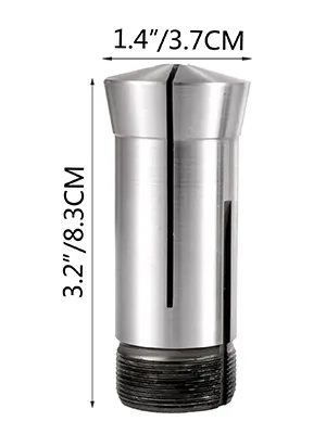 The aperture sizes are 1/4", 5/16", 3/8", 1/2", 5/8", 3/4", 7/8" (6.35, 7.94, 9.53, 12.7, 15.88, 19.05, 22.23 mm), making sure that the collet can tightly hold the workpiece.