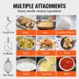 VEVOR Commercial Mixer with a 10 L mixing bowl, ideal for mixing large quantities of food at once. It features a powerful motor with 3 adjustable speeds (High 409r/min, Medium 220r/min, Low 135r/min) and comes with 3 mixing attachments to handle various ingredients effortlessly.
