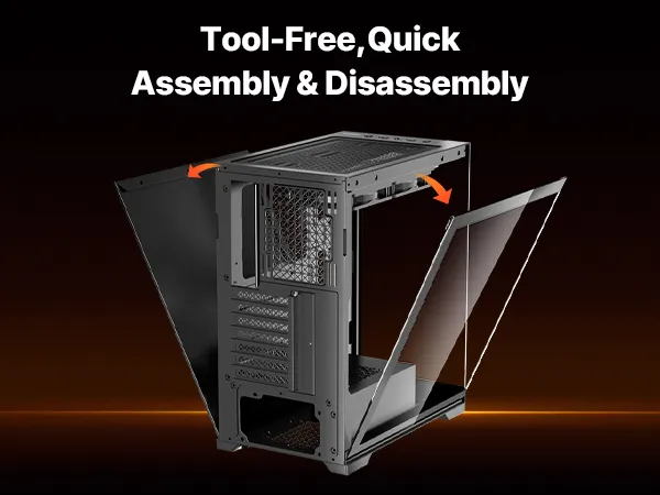 Q: Can I detach the case without tools? Can a tech-naive person like me do it? A: No tools needed! You can easily detach the front glass and left glass by hand. Cleaning dust, swapping hardware, or installing water cooling? It's as simple as opening a can!