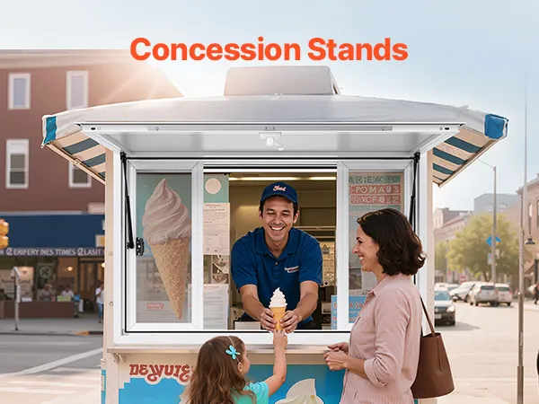 Slot Design Upgrade: Our food truck window is covered with sturdy aluminum composite panels. Customers can replace the glass style themselves (glass sold separately), allowing personalized booth styling to boost your sales appeal