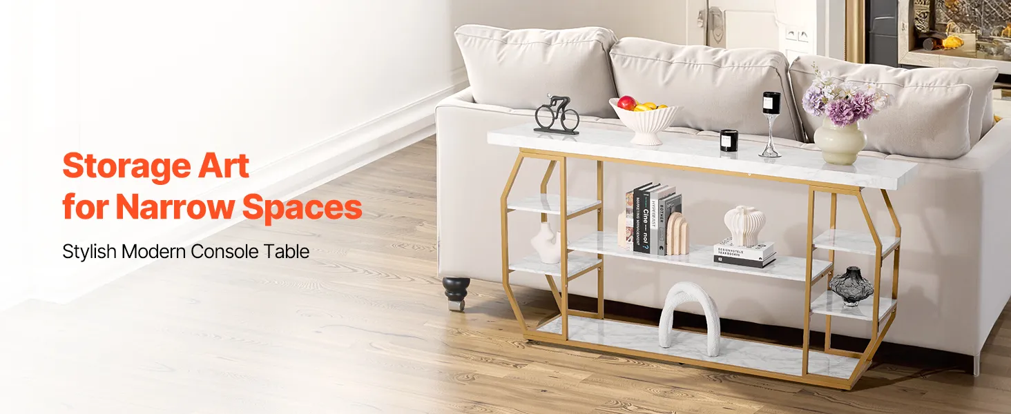 Thick Tabletop: Featuring a 2 in / 5 cm faux marble top, this console table is stylish and sturdy. It’s easy to wipe clean, keeping the surface neat with minimal effort.