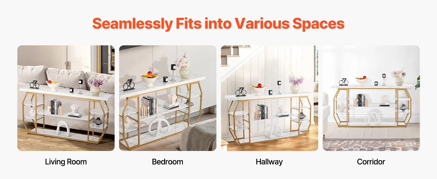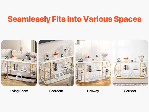 Versatile Design: Ideal for entryways, living rooms, hallways, and bedrooms, this table can be used as a console table, sofa table, or entry table. It serves as both a storage space for trays, coffee, plants, books, keys, and bags, and a display table to elevate your home’s style.
