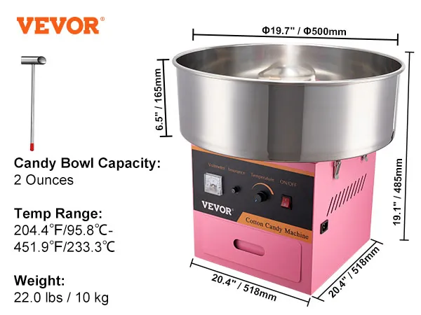 Temp Control: Unlike the common ones, our electric candy floss maker features a voltage meter and a temp control knob. By changing voltage, you can simply adjust the temperature from 149℉ to 473℉. If you want to try different flavored sugars, you will absolutely need this.
