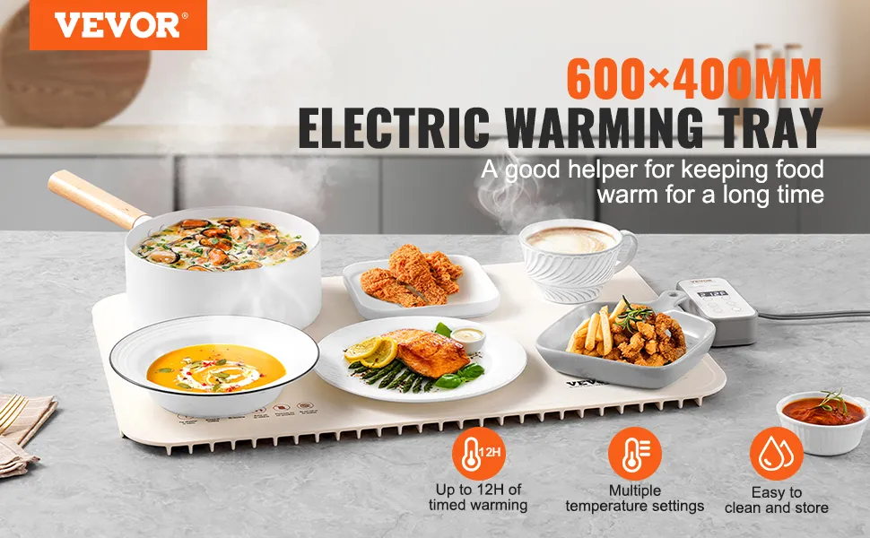 Wide Application: Suitable for a variety of high-temperature dishware, this warming tray is ideal for keeping food warm during parties, birthdays, Christmas, and buffets. Avoid using it on glass tables, and ensure that dishware has a flat bottom for quick and efficient heating.