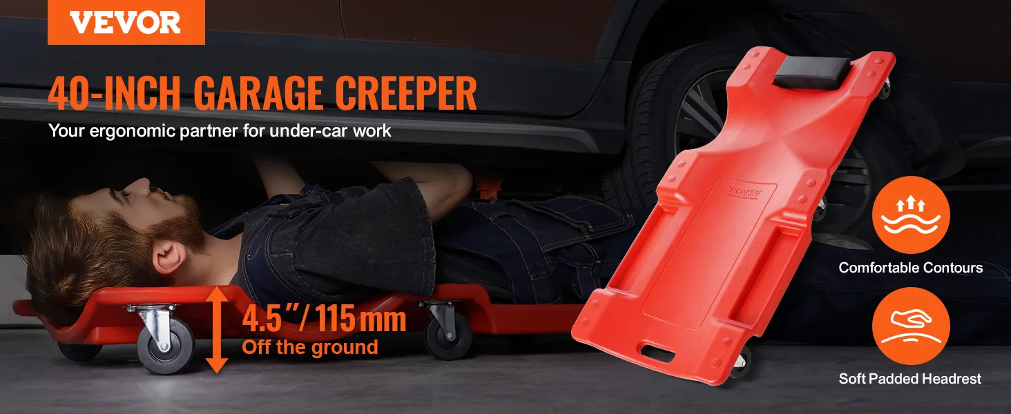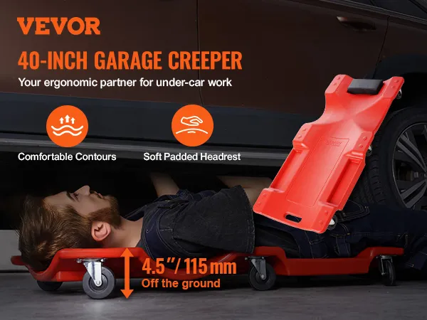 Ergonomický design: Tento jednodílný garážový pojízdný vozík o délce 1 m (40 palců) je ideální pro vyšší mechaniky. Povrch má ergonomicky navržené drážky, které pohodlně podpírají záda a pas, když si lehnete. Odolná a měkká opěrka hlavy s koženým vnějším povrchem a elastickou vnitřní oporou pomáhá uvolnit tlak na hlavu a krk. Ideální pro zasouvání do těsných prostor pod vozidly a vysouvání z nich.