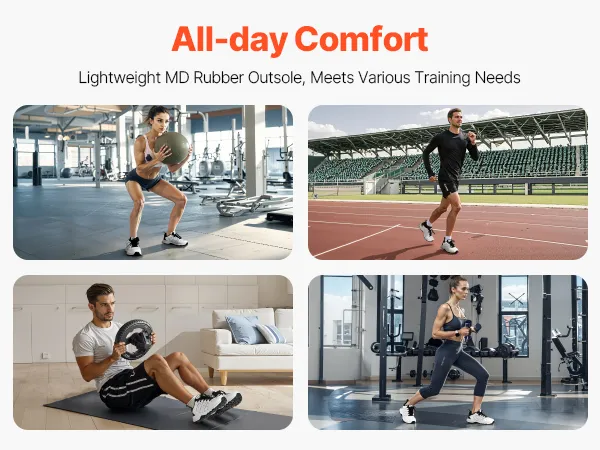 Ľahká podrážka pre ideálne prispôsobenie: Topánky so širokou špičkou sú vyrobené z MD gumy s nízkou hustotou, ktorá poskytuje ľahký a podporný dizajn. Dostupné v plných veľkostiach s presným prispôsobením od veľkosti 8 do 13. Spoľahlivý spoločník pre vnútorné fitness a cross-tréning.
