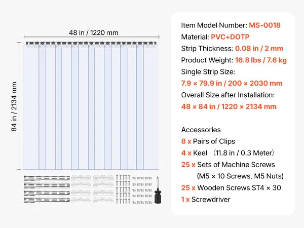 Excellent Fit: Measuring approximately 84 in long and 48 in wide, this plastic door strip offers full, effective coverage for your doorway. With a sturdy 0.08 in thickness, it's designed for frequent use without losing its shape or strength