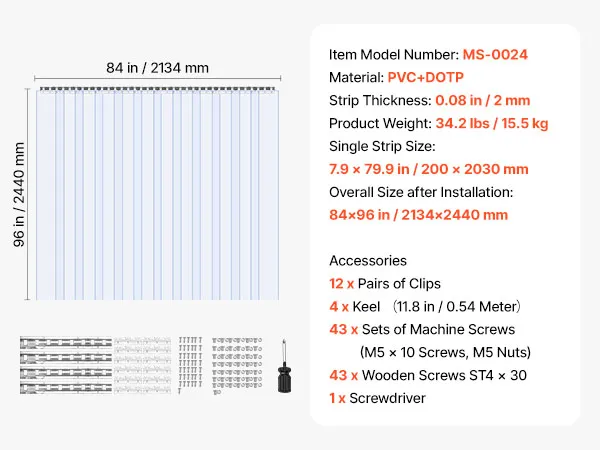 Excellent Fit: Measuring approximately 96 in long and 84 in wide, this plastic door strip offers full, effective coverage for your doorway. With a sturdy 0.08 in thickness, it's designed for frequent use without losing its shape or strength