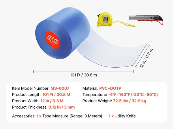Excellent Fit: Measuring approximately 101 ft long and 12 in wide, this plastic door strip offers full, effective coverage for your doorway. With a sturdy 0.12 in thickness, it's designed for frequent use without losing its shape or strength