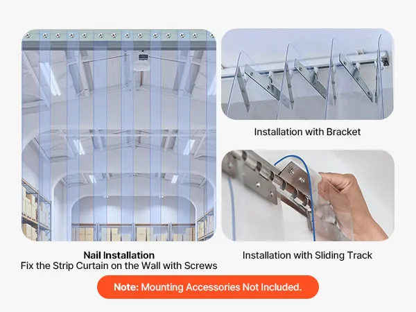 Q: Is installation complicated? A: Installation is quick and simple. Strips can also be replaced individually without removing the entire curtain.