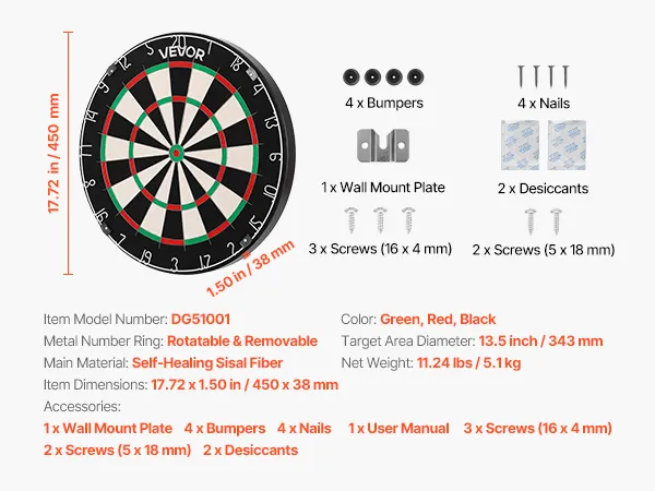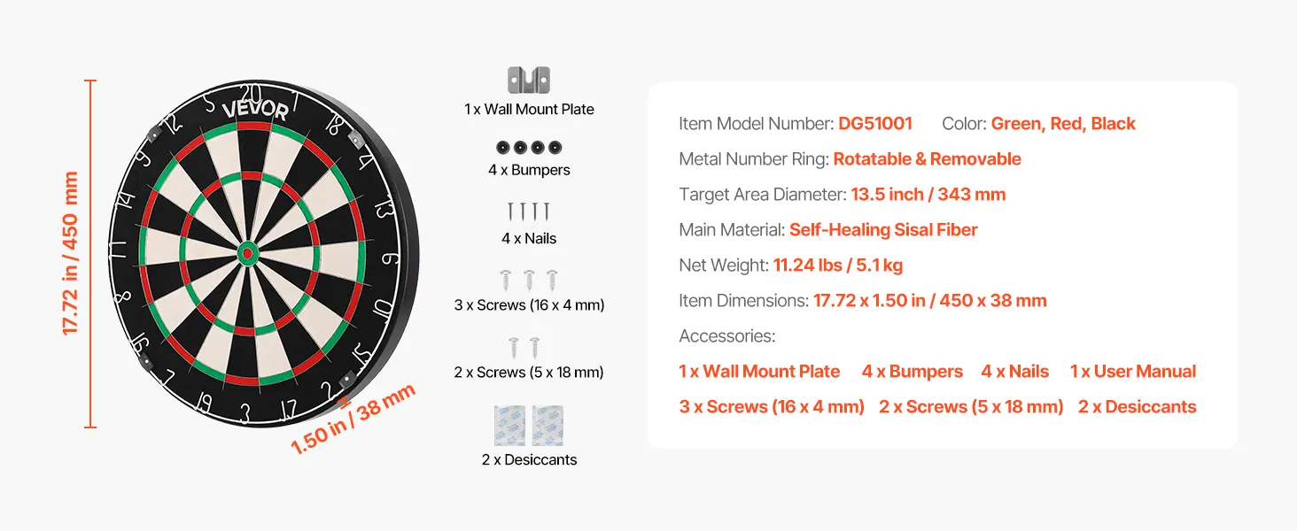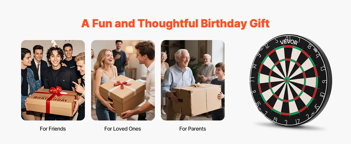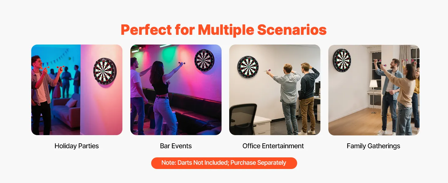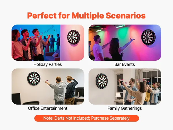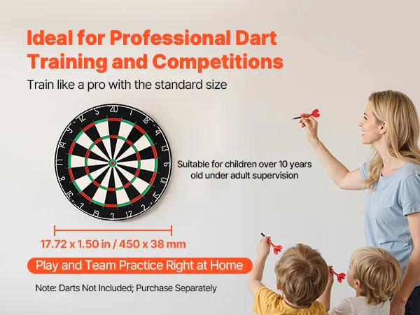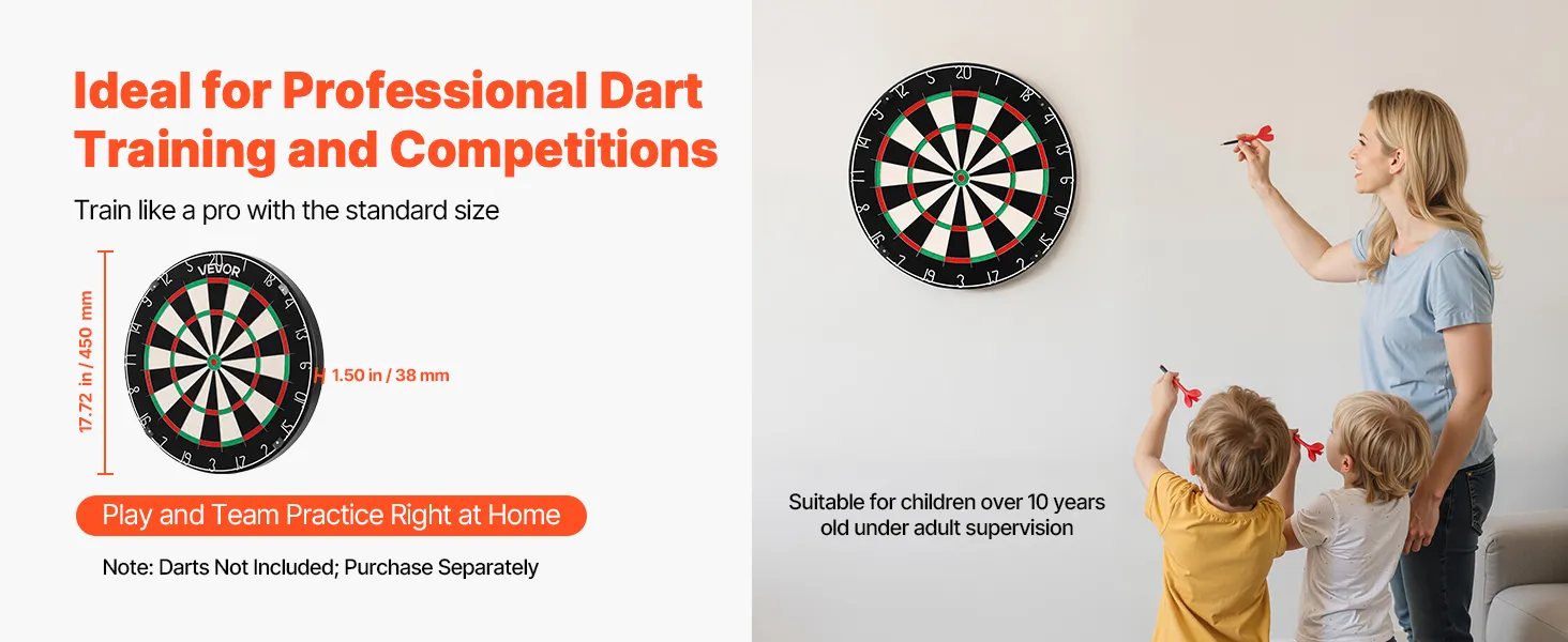 Professional Size: 450mm diameter with a 343mm target area, meeting international competition standards. Ideal for family gatherings, office entertainment, holiday parties or bar events, offering fun-filled gameplay and interaction—great gift for family and friends