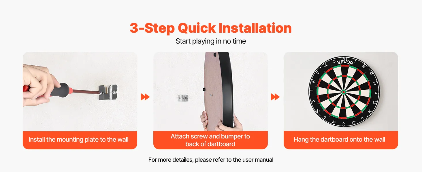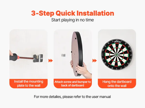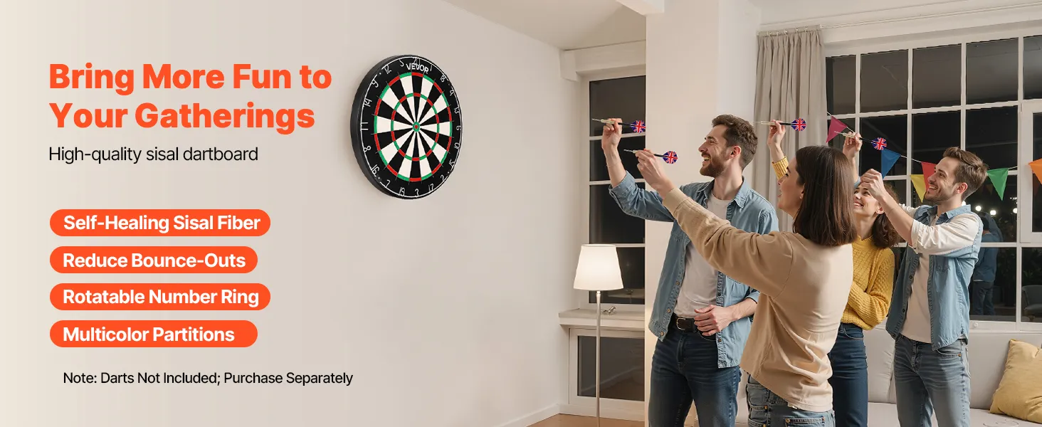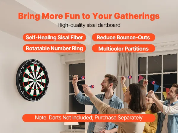 Self-Healing Sisal Fibers: Made from high-grade African sisal fibers, VEVOR dartboard offer excellent self healing, resists fraying and shedding, and ensures consistent dart holding for precision throws and long-lasting play. (Note: Darts Not Included; Purchase Separately)
