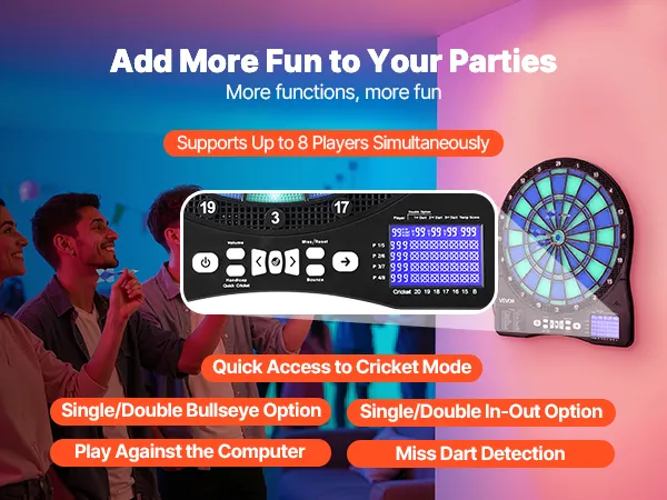 The dartboard control panel is user-friendly and easy to operate, making it quick for beginners to get started. Whether it's a family gathering or a party, the intuitive controls and precise scoring system ensure every match is filled with fun and interaction.