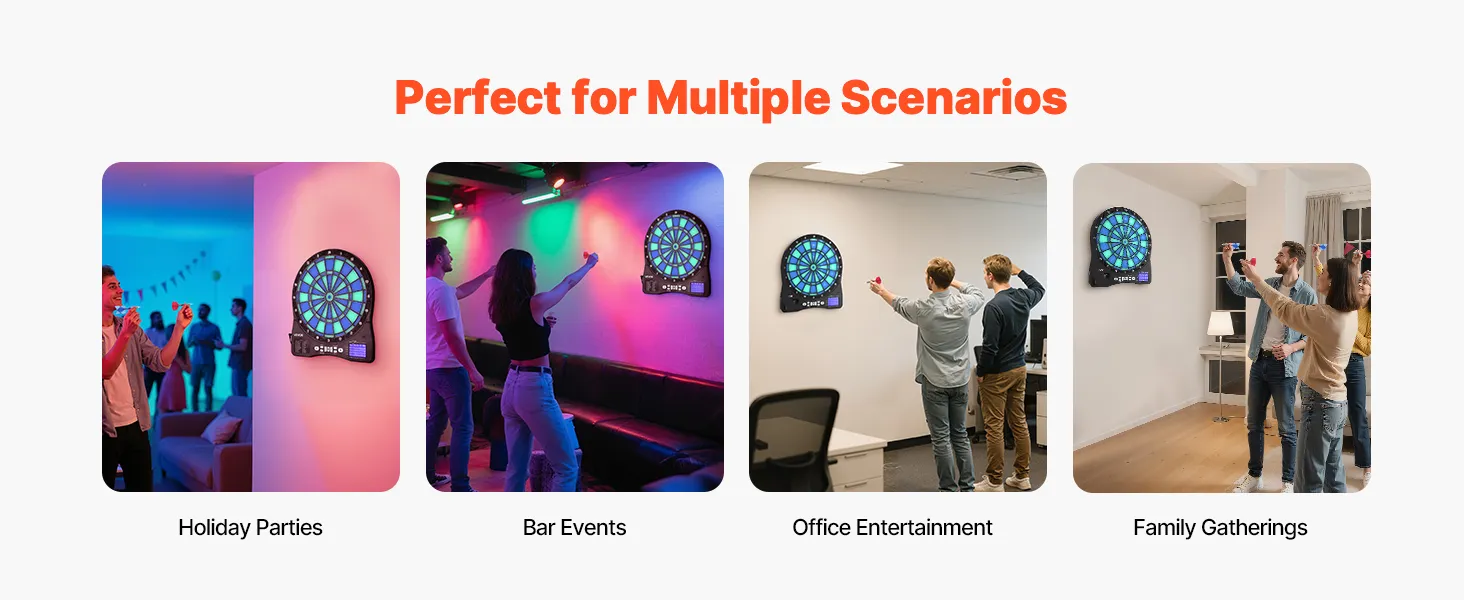 Whether it's a family gathering, holiday party, office team-building event, or bar activity, this electronic dartboard fits seamlessly into any occasion. Combining interactive fun with competitive play, it's the perfect tool for socializing and relaxation.