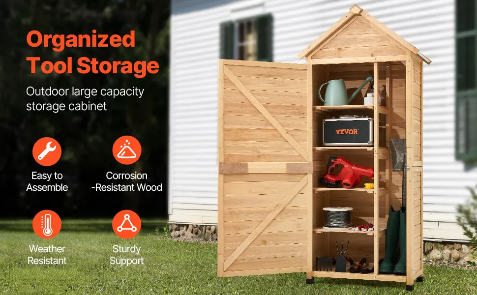 VEVOR Outdoor Storage Shed, Large Wooden Outside Storage Shed, Garden Tool Shed with Shelves, Lock, and Floor, Waterproof Storage House Cabinet for Patio Yard Lawn Garden, 28x63 inch