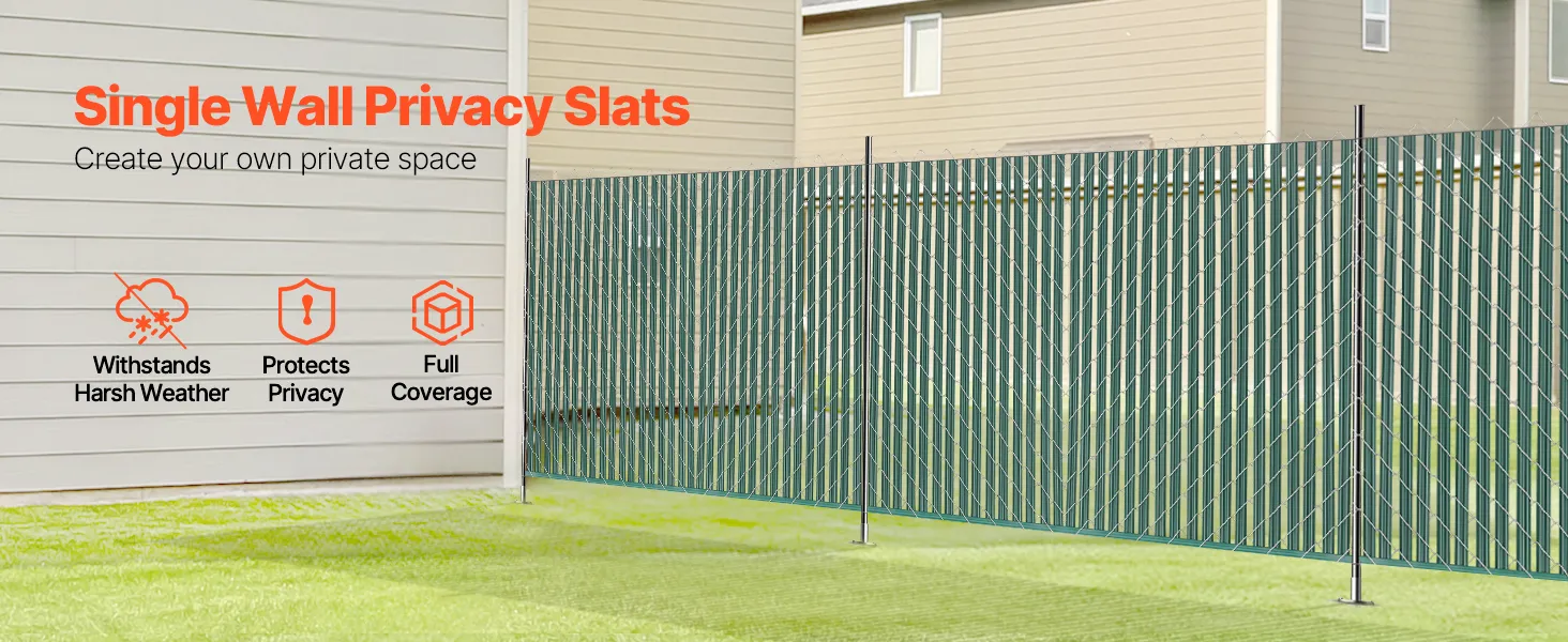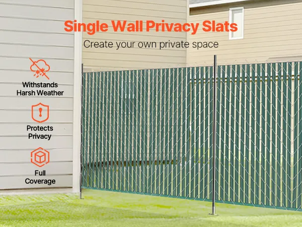 Ripas de privacidade de parede única: projetadas especificamente para cercas de 4 pés de altura, essas ripas de privacidade com trava inferior têm aproximadamente 44,5" de comprimento, garantindo um ajuste ideal e evitando que as ripas se estendam acima do topo da cerca.