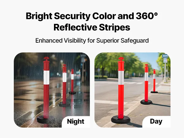 High Visibility: Featuring high-intensity 360° reflective strips, the traffic delineator posts ensure high visibility even in low light, foggy conditions, or strong glare. It allows pedestrians, vehicles, and construction workers to identify the posts promptly, enhancing security during work or traffic diversion