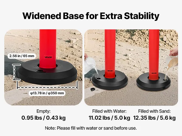 Quick Setup: The base is designed to be filled with water (11.02 lbs / 5.0 kg) or sand (12.35 lbs / 5.6 kg), making it lightweight and easy to transport by one person. Simply fill the base for additional weight to avoid tipping in windy conditions