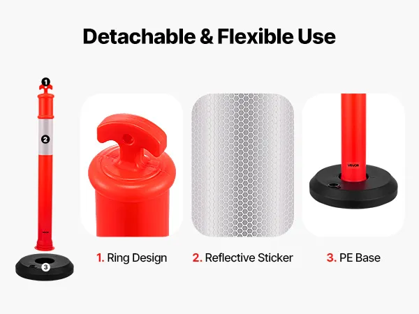The delineator posts feature bright colors and 360°reflective strips design, ensuring enhanced security for nighttime road warnings. Its detachable design allows for easy storage in emergency vehicles or for large-scale transportation, making it readily accessible when needed.