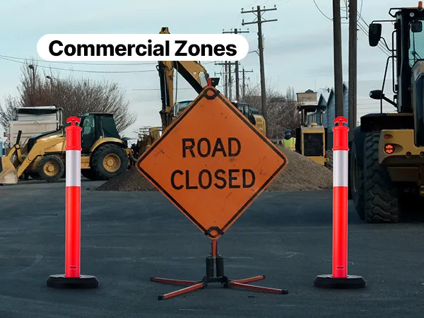 Versatile Applications: Widely suitable for road construction sites, garage entrances, commercial parking spaces, and crowd control areas. By connecting the delineator posts with chains or placing them individually, you can quickly create a security zone or guide pathway