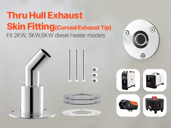 Complete Exhaust Kit: Our thru hull exhaust skin fitting includes 1 bent exhaust head, 2 silicone gaskets, and 1 stainless gasket. It delivers the key components for efficient installation, ensuring steady exhaust flow across different diesel heater systems