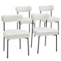 Sada 4 jídelních židlí VEVOR Boucle, moderní šerpa židle v polovině století, čalouněná boční židle k jídelnímu stolu, prostorově úsporná bílá kuchyňská židle se zaobleným opěradlem a černými kovovými nohami