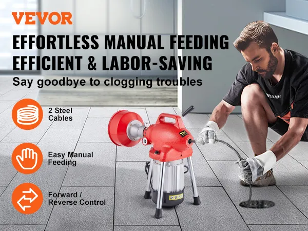 Cansado de canos entupidos e encanamentos caros? Diga adeus aos odores desagradáveis e à manutenção complicada! Deixe a máquina de limpeza de ralos VEVOR de 20 m x 1,5 cm resolver seus problemas de entupimento de uma só vez. Economize em serviços de encanamento caros resolvendo você mesmo os problemas de drenagem!