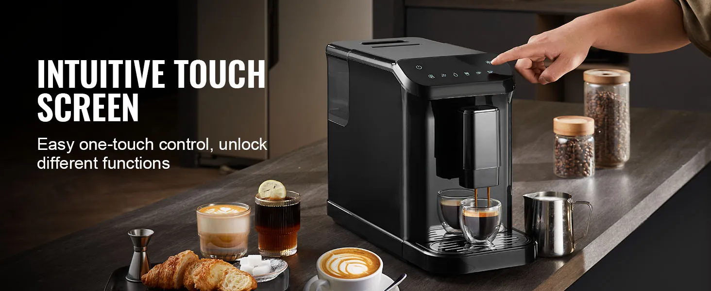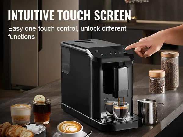 The intuitive touch screen makes operation a breeze. With a single touch, you can select from options like single espresso, double espresso, and more.