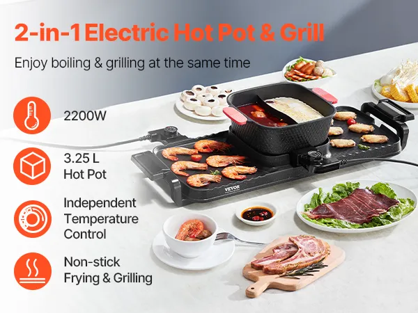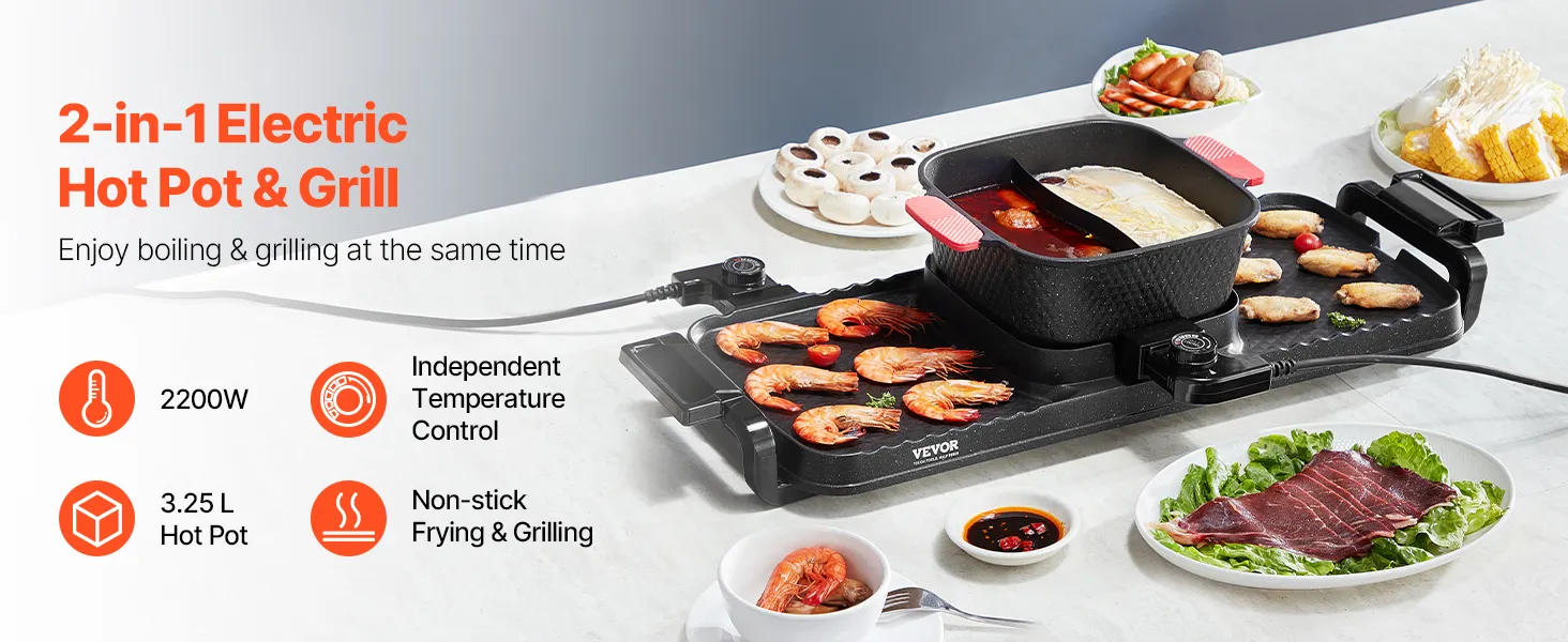 3.25 L Electric Hot Pot with Grill, Double the Flavor