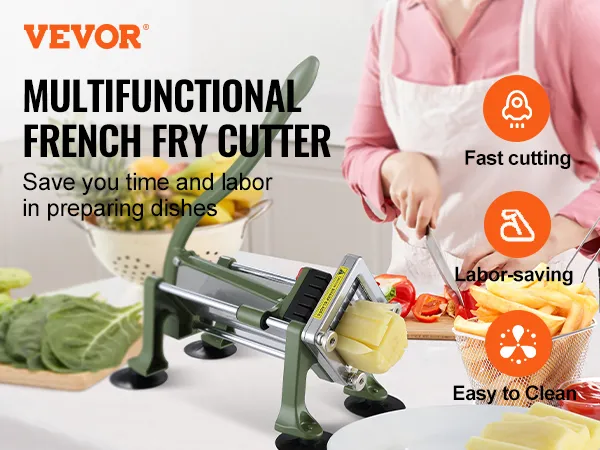 Vybavený ostrou čepeľou a ergonomickou pákou so 4 prísavkami s protišmykovými nožičkami pre zvýšenú stabilitu. Silné sanie zaisťuje protišmykovú ochranu počas prevádzky. Bez námahy krája zeleninu ako zemiaky, mrkvu, uhorky a dokonca aj tvrdšiu zeleninu ako sladké zemiaky.