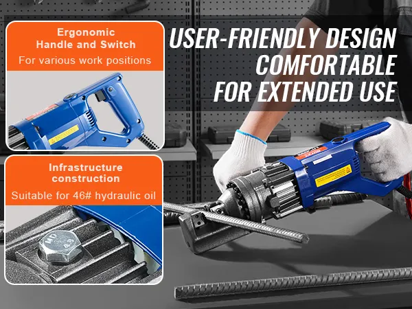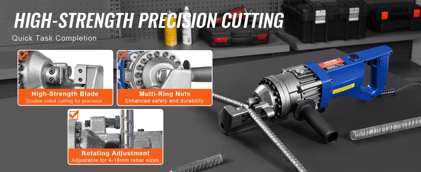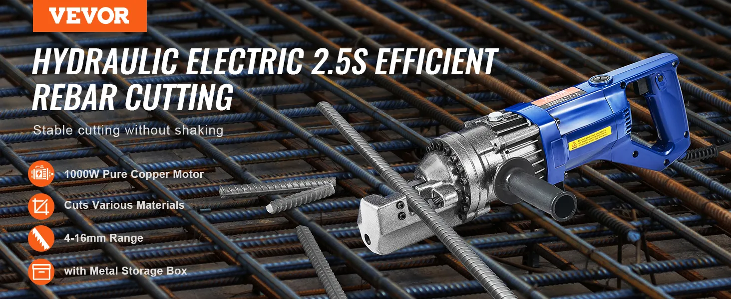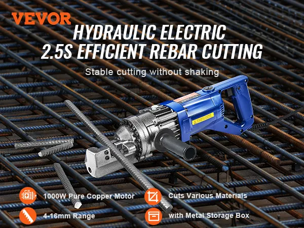 Rapid Cutting: The hydraulic electric rebar cutter precisely cuts solid rebar within 2.5 seconds, providing a smooth, burr-free cut. Powered by a 1000W pure copper motor for strong performance.