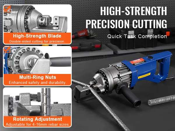 Wide Cutting Range: Suitable for cutting rebar with diameters from 5 to 28mm. It handles various types of rebar including medium carbon, low carbon, round, and threaded rebar.