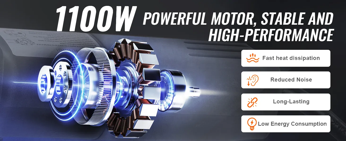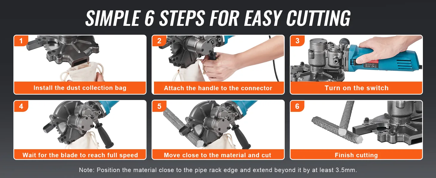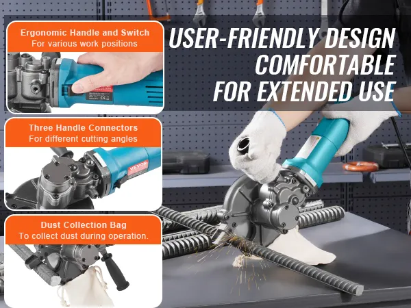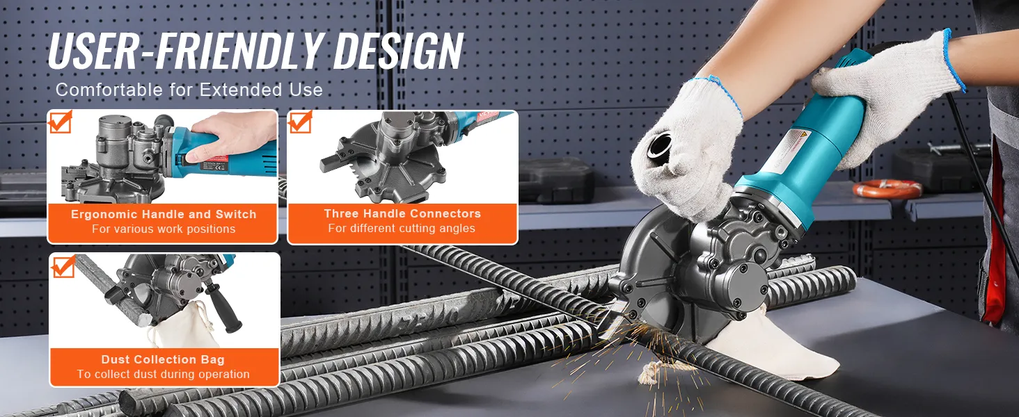 Accurate And Fast Cutting: Electric cutting rebar, able to accurately cut solid rebar within 2-3 seconds, the cutting surface is smooth and burr-free, 1100W pure copper motor strong power.