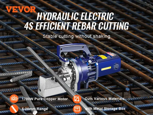 Rapid Cutting: The hydraulic electric rebar cutter precisely cuts solid rebar within 4 seconds, providing a smooth, burr-free cut. Powered by a 1700W pure copper motor for strong performance.
