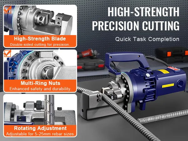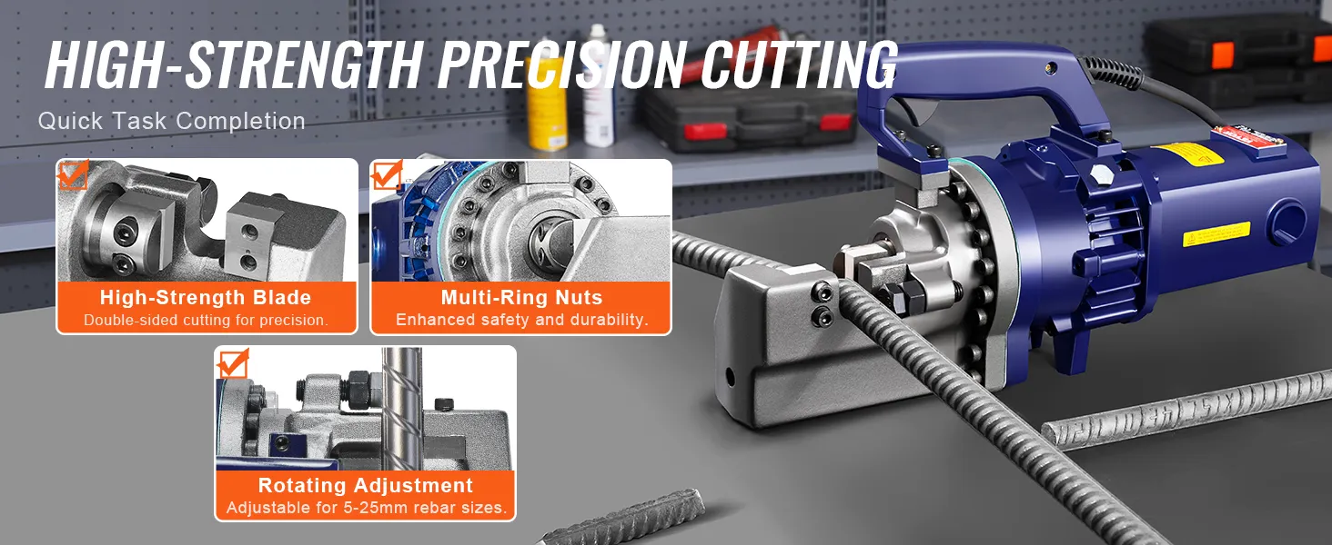 Wide Cutting Range: Suitable for cutting rebar with diameters from 5 to 25mm. It handles various types of rebar including medium carbon, low carbon, round, and threaded rebar.