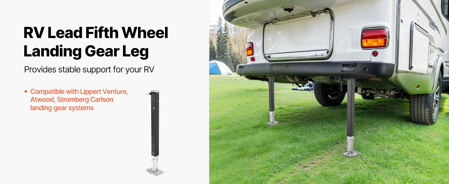 Compatible Models: Our replacement RV lead landing gear leg is designed for fifth wheel RVs. It fits Stromberg Carlson landing gear kits (LG-1, LG-3, or LG-183708) and is compatible with Lippert Venture and Atwood landing gear systems