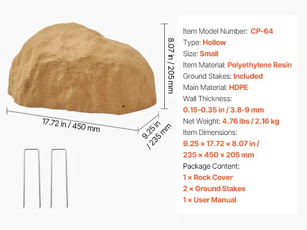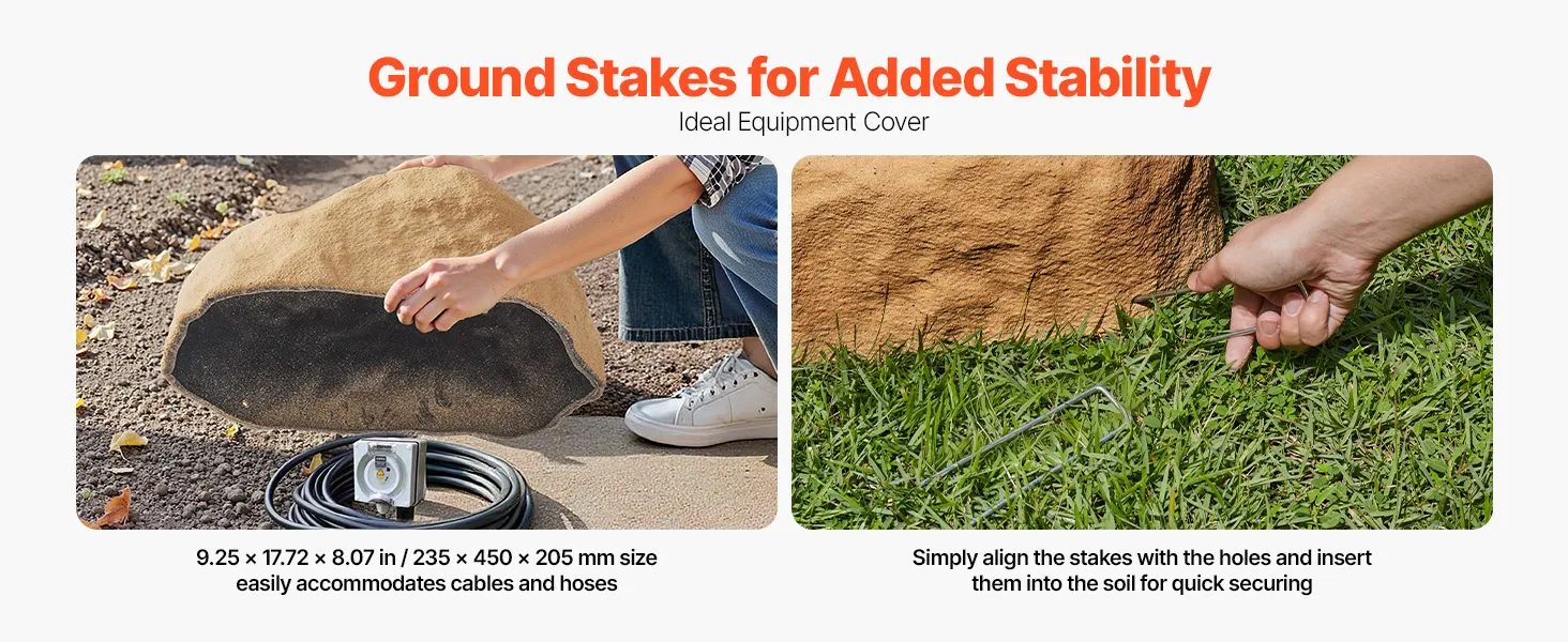 Wind-Resistant & Stable Design: Our artificial rock covers provides bottom holes and includes metal stakes for easy fixation on grass or soil. This design avoids wind-induced displacement, and its installation requires no tools. Suitable for yards and patios