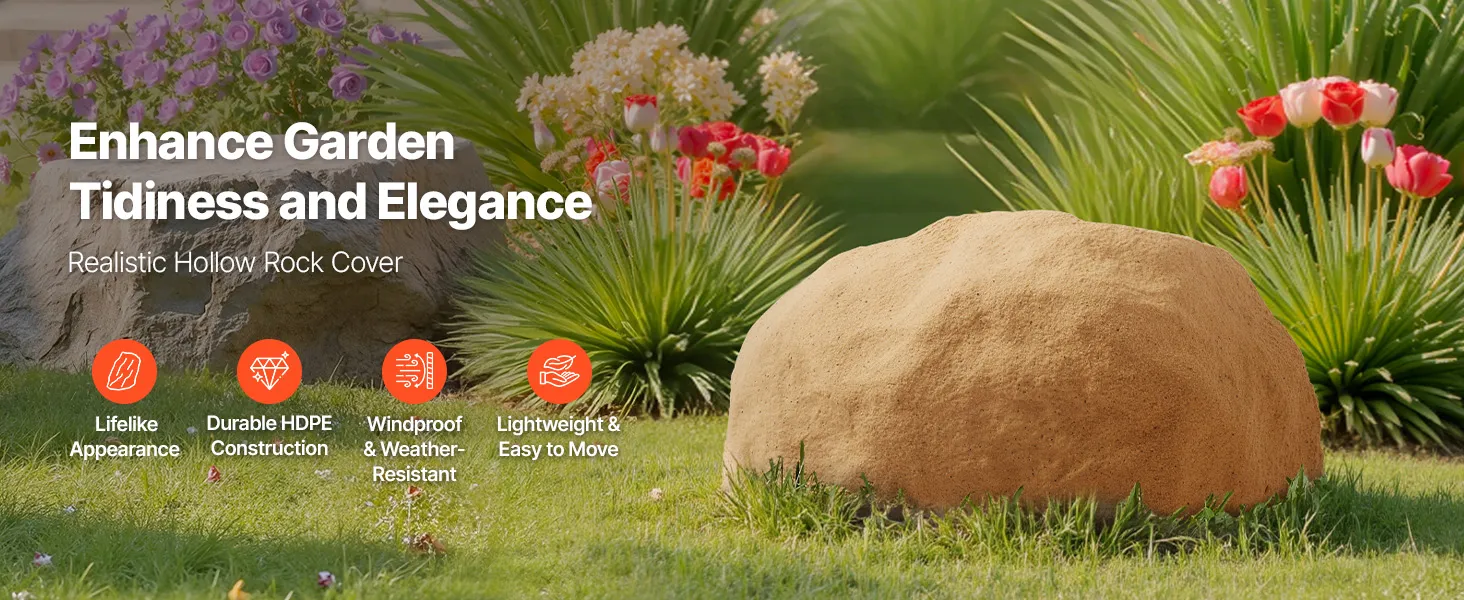 Crafted from high-density HDPE, this rock cover is sun-resistant, fade-proof, and crack-resistant even in harsh winter conditions. Our faux rock cover maintains a neat appearance for long-term outdoor use—reliable and durable.