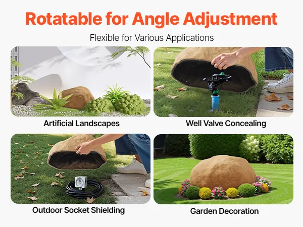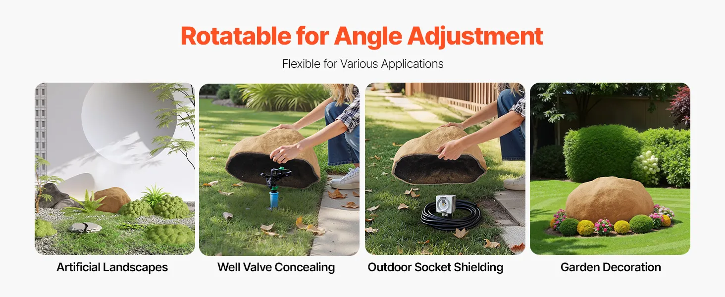 The angle can be flexibly rotated and adjusted according to your needs. This landscape rock cover is ideal for manhole lid concealing, small pumps, electrical boxes shielding, and garden decoration. Multi-purpose design make it practical and stylish.