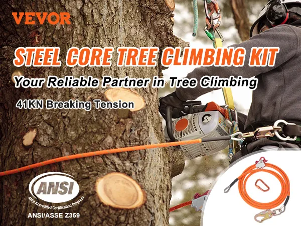 Oceľové jadro VEVOR 16 mm, arboristické lano na lezenie po stromoch s karabínou z legovanej ocele a karabínou z hliníkovej zliatiny, pevnosť v tahu 30 kN pre ochranu proti pádu, stromolezec