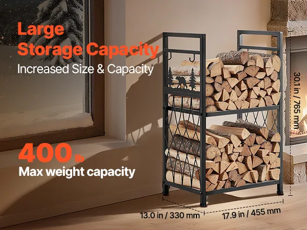 2-Tier Supports 400 lbs: Engineered with a reinforced double-layer structure, this firewood rack offers a remarkable 400 lbs load capacity, providing enhanced stability and ample storage for logs of all sizes.